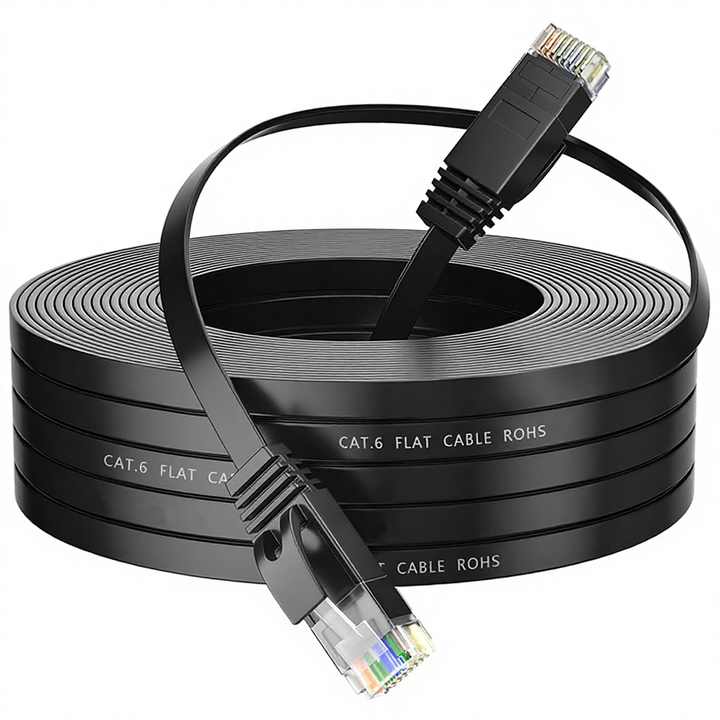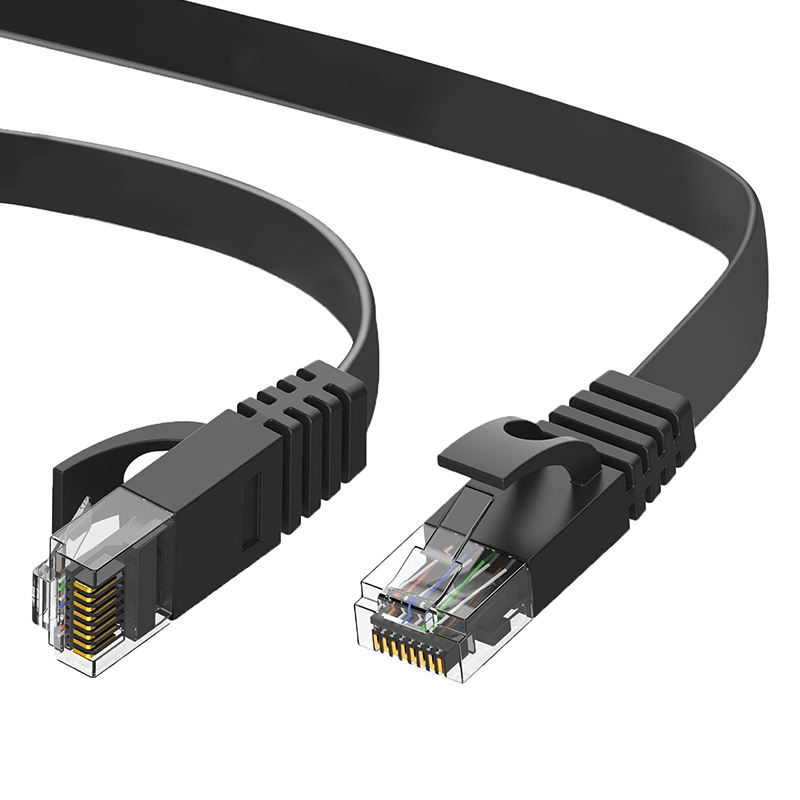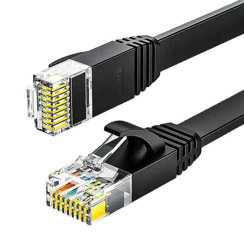 Câble plat en cuivre à conducteur solide CAT6 UTP noir non blindé, réseau Ethernet haute vitesse LAN 0,5-100m 32AWG