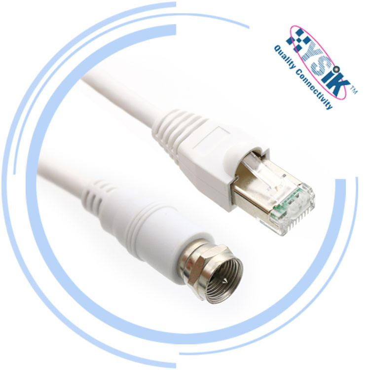 CATV Balun Patch Cord Câble Coaxial F Connecteur Mâle à RJ45 STP Plug Avec 50cm