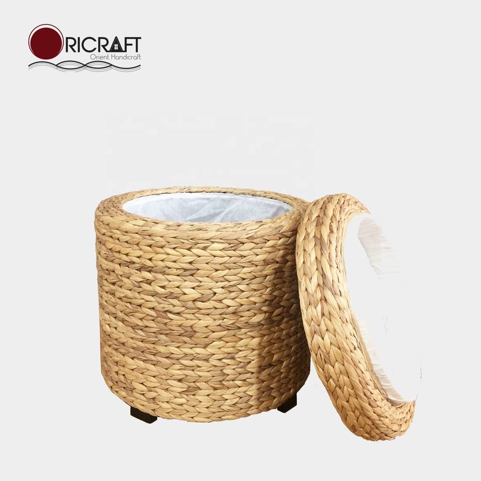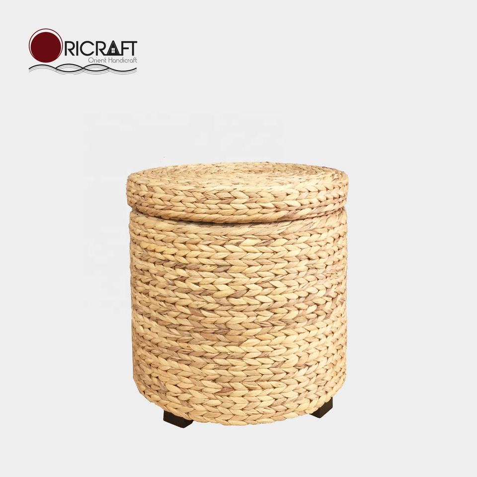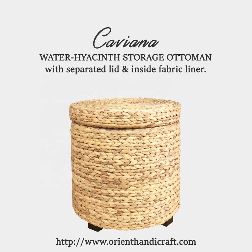 CAVIANA Pouf de rangement minimaliste en jacinthe d'eau avec housse amovible pour salon, cuisine, appartement, extérieur, supermarché