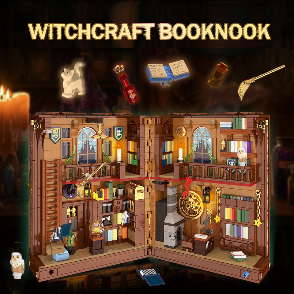 CAYI livre Nook Kit en plastique magique sorcière artisanat construire bloc Miniature maison Kit livre Nook éclairé étagère décoration de la maison serre-livres