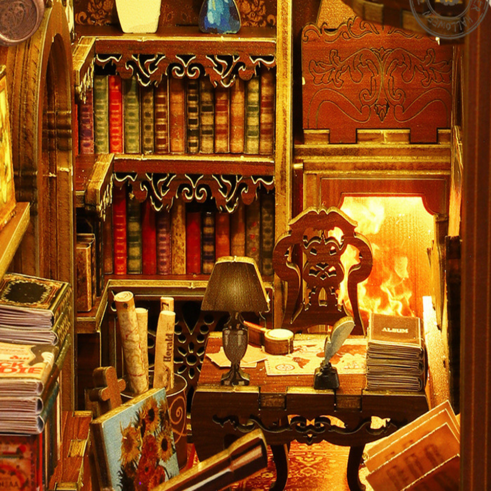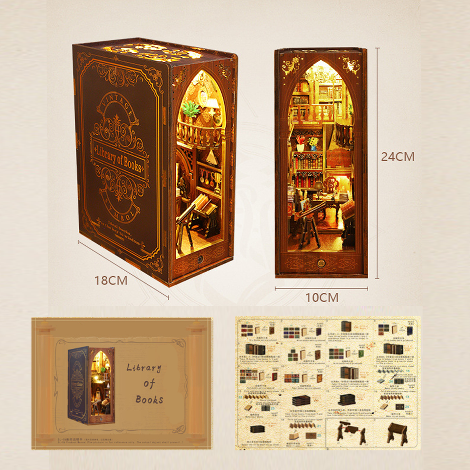 CAYI Minicity Bibliothèque en miniature 3D, puzzle en bois 3D, kit de maison miniature, puzzle 3D, kit de bricolage, kit de bricolage pour bibliothèque en miniature