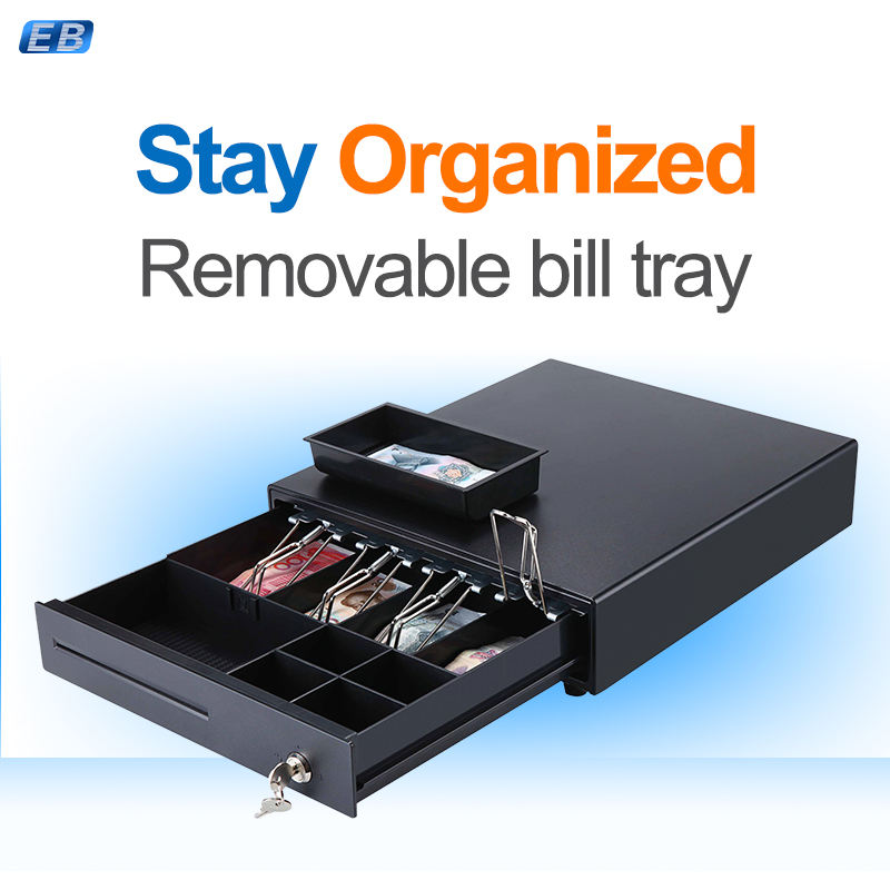 Tiroir-caisse CB-330E POS 335mm RJ12 4 billets 8 pièces 9V 24V en métal pour caisse enregistreuse de vente au détail