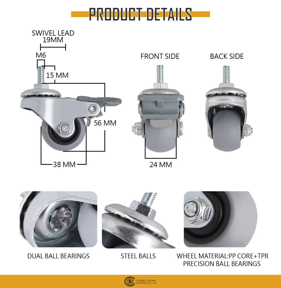 Nom du produit:CCE 1,5 pouces M6 tige filetée roulettes pivotantes avec frein