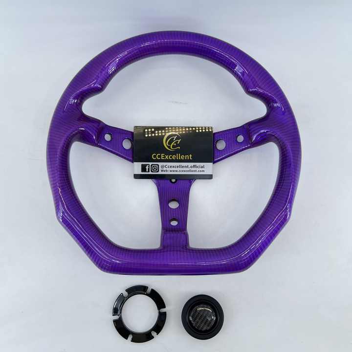Volant de course professionnel personnalisable en fibre de carbone véritable violet CCExcellent pour Momo, forme D, 6 trous, universel