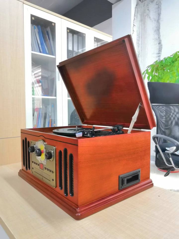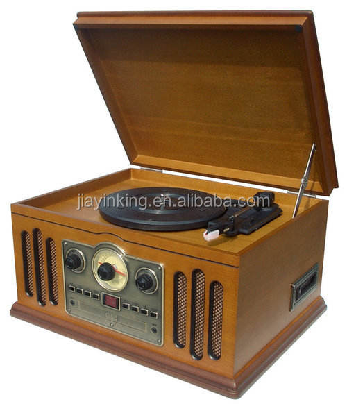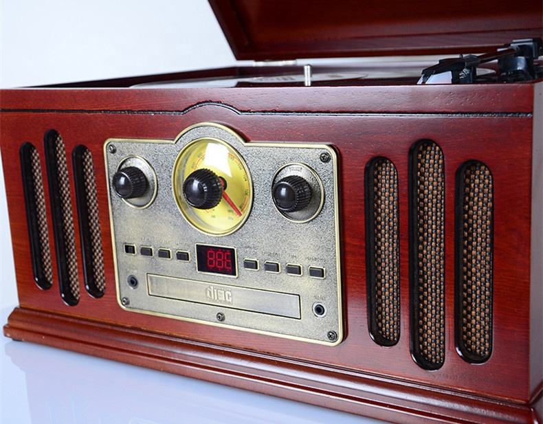 Lecteur CD Vintage gramophone vinyle lecteur LP vieux look de mode avec haut-parleur puissant stéréo plateau tournant 6 en 1