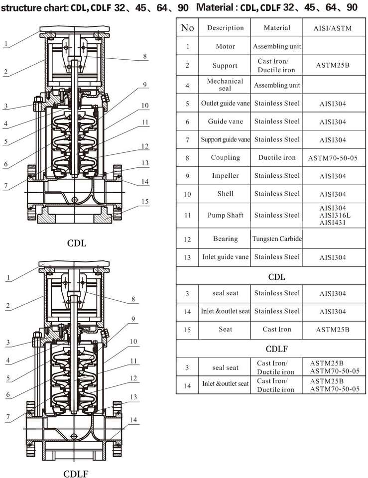 Type de pompe:pompe multicellulaire verticale