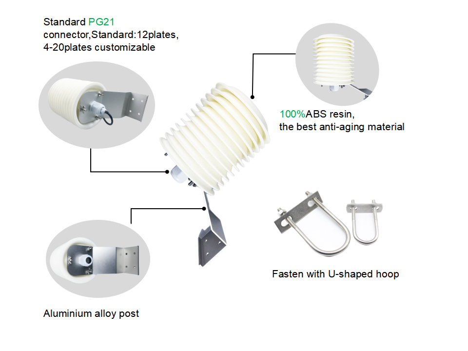 CDP-10A Station météo de protection dimensionnelle personnalisée avec bouclier de rayonnement solaire Instruments de température supportés par OEM