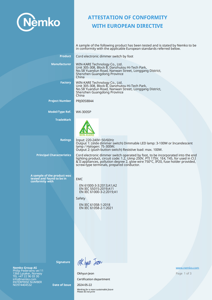 Contrôleur Triac LED 220V approuvé CE gradateur à glissière à WK-300S pieds pour lampes de table et de sol jusqu'à 150W maximisant le contrôle de l'éclairage