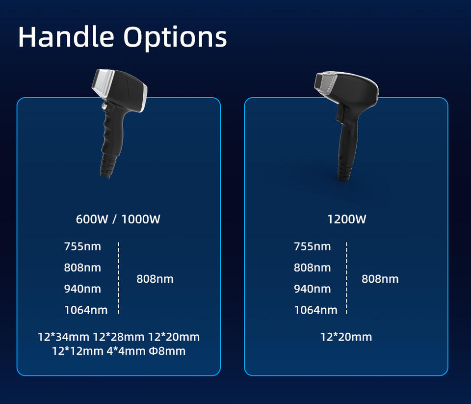 Taille du spot:600W/1000W 6 embouts laser de traitement interchangeables ou 12*20mm 1200W