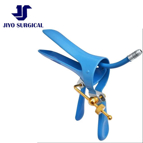 Spéculum vaginal à vis latérale de vente chaude approuvé CE avec tube d'évacuation de fumée instruments chirurgicaux isolés en bleu