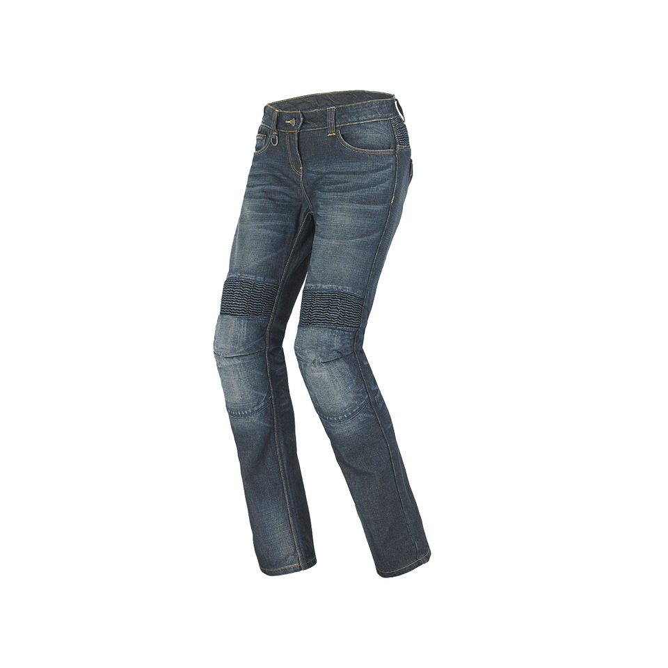Jean de motard à motif côtelé homologué CE pour dames, denim de moto délavé foncé, de classe AA, à motif solide et droit, avec protection Prime