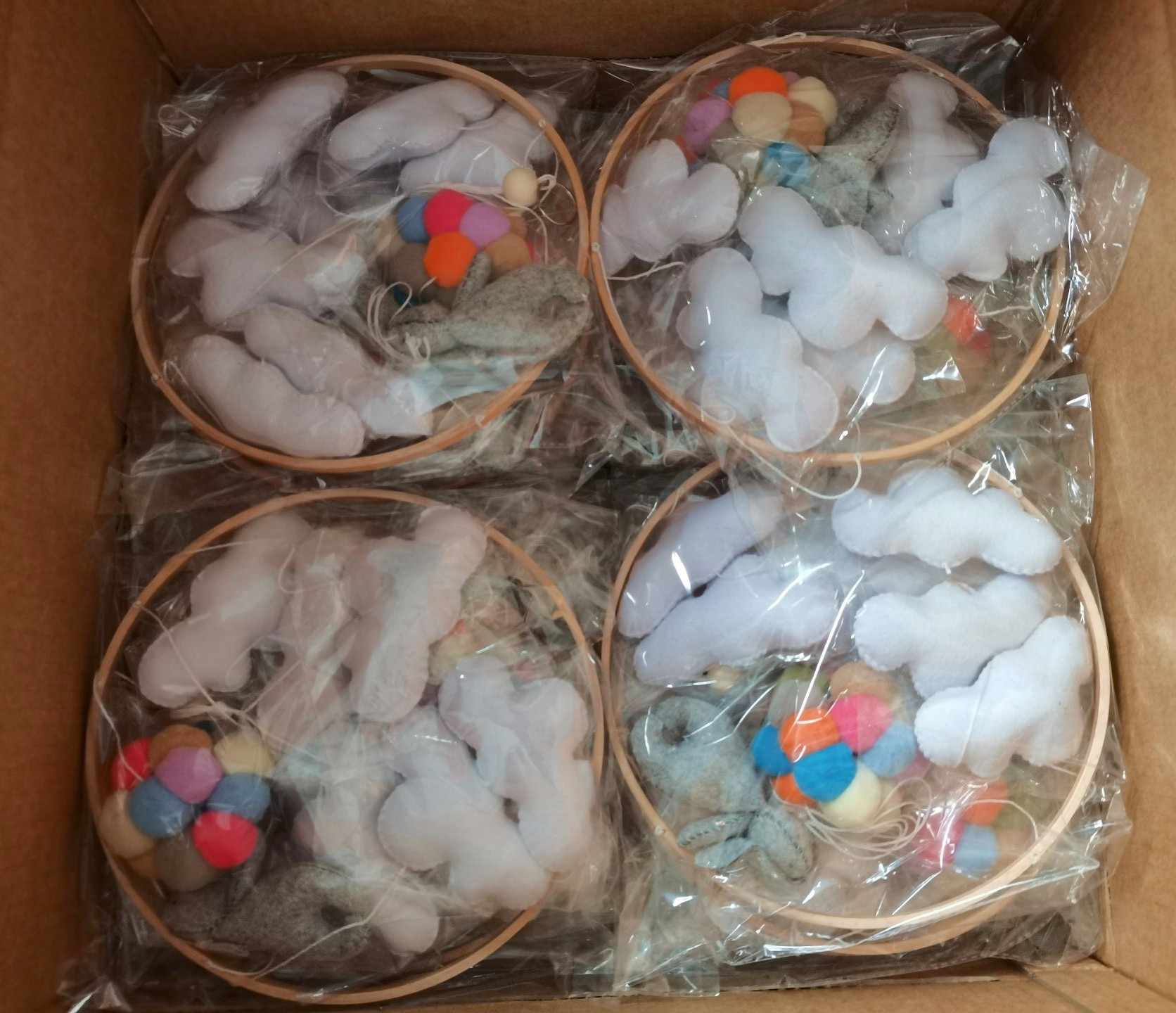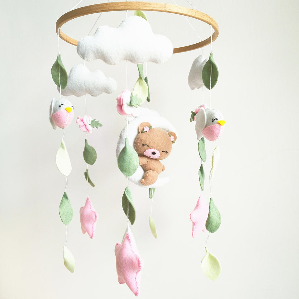 CE CPC vente chaude 2023 produits pour bébés en peluche ours endormi oiseau suspendu boule de laine peluches en bois feutre berceau coran bébé mobiles; chacun dans un sac d'opp