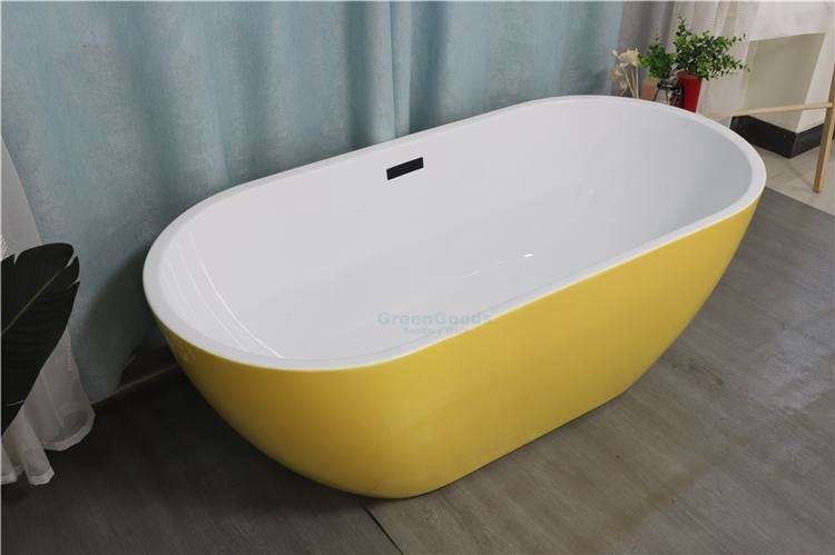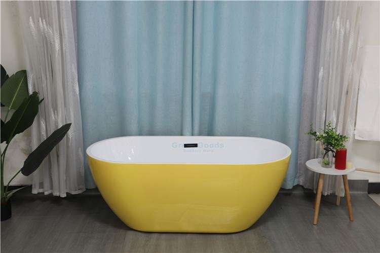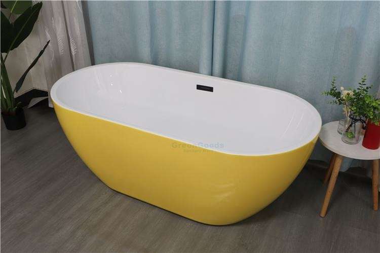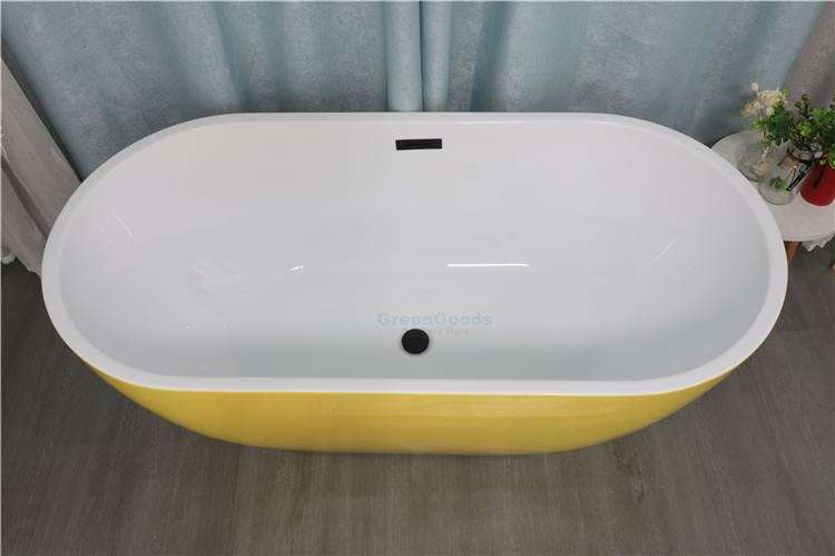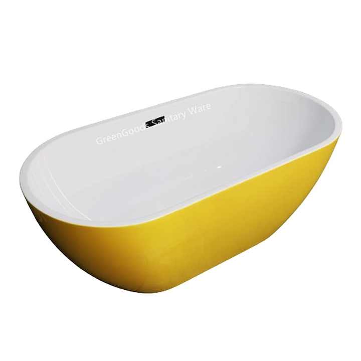 Type de texte:Baignoire ovale autoportante de couleur jaune pour projet hôtelier