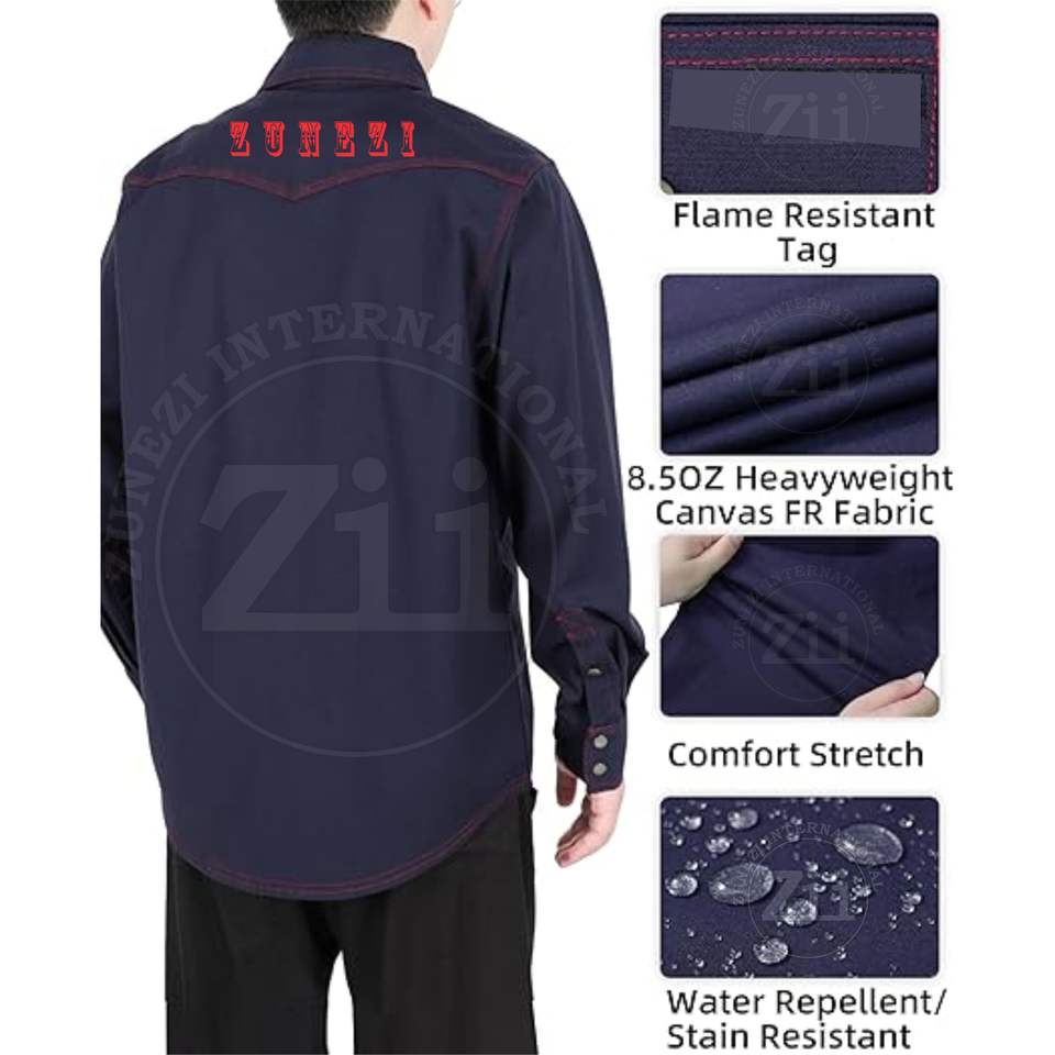 Chemise de travail haute visibilité pour homme en coton ignifuge certifié CE, tissu Ripstop, ignifuge, coutures soudées, avec pack respirateur, résistante à la chaleur