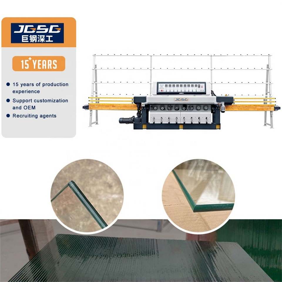 Machine à chanfreiner le verre verticale CE certifiée JGSG, commande électrique, puissance 17KW, épaisseur 3-12mm, 8 moteurs, moteur principal, facile à utiliser