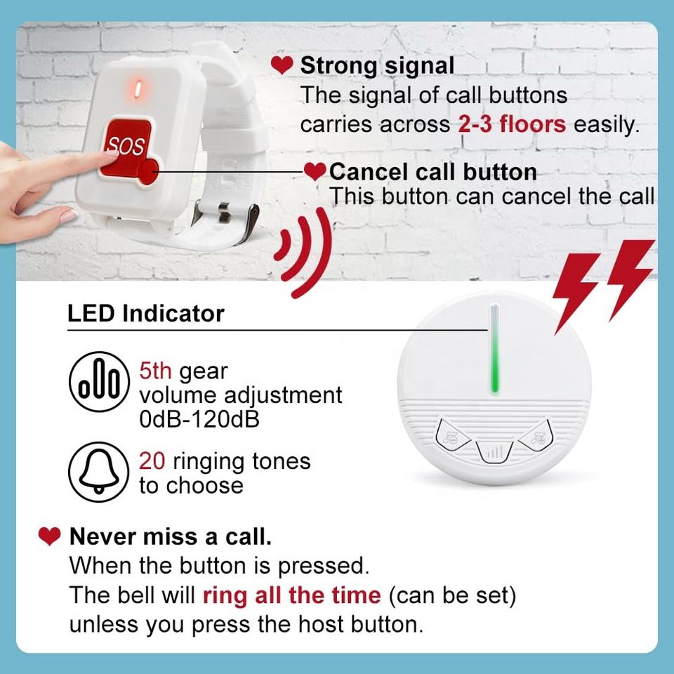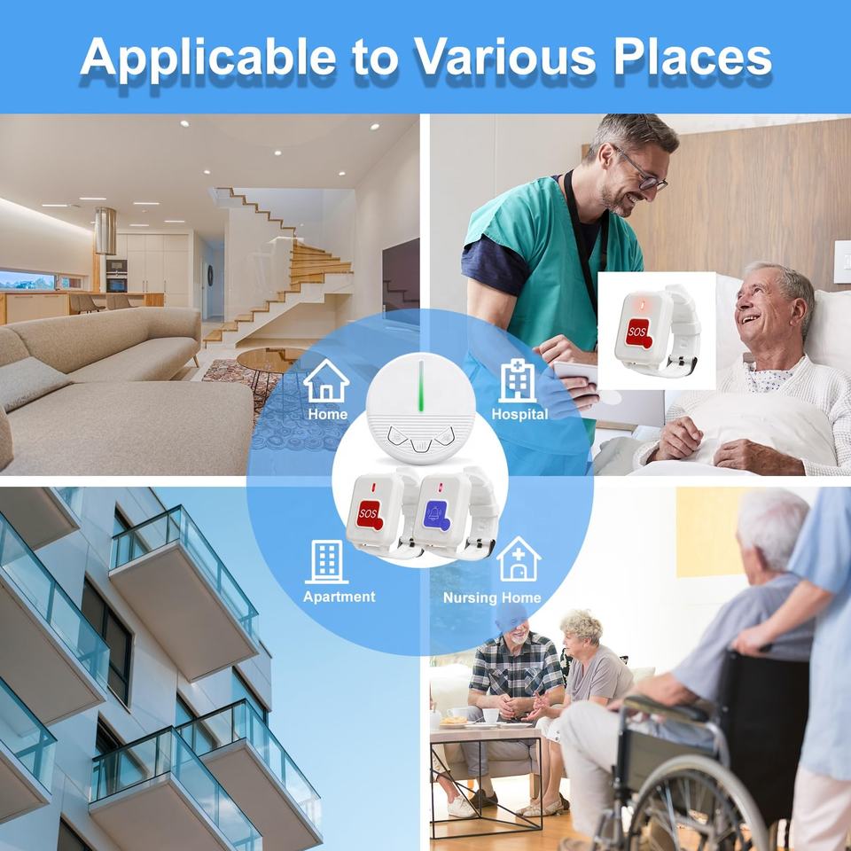 Système d'alerte médicale certifié CE avec 2 bracelets SOS étanches pour les maisons de retraite, dispositif d'appel d'urgence