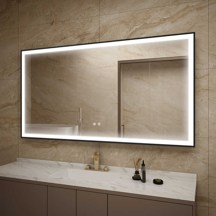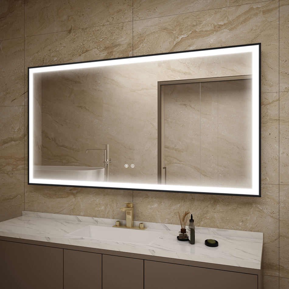 Miroir LED moderne certifié CE - Rectangulaire avec anti-buée et garantie de 3 ans pour les hôtels et les villas, marché européen