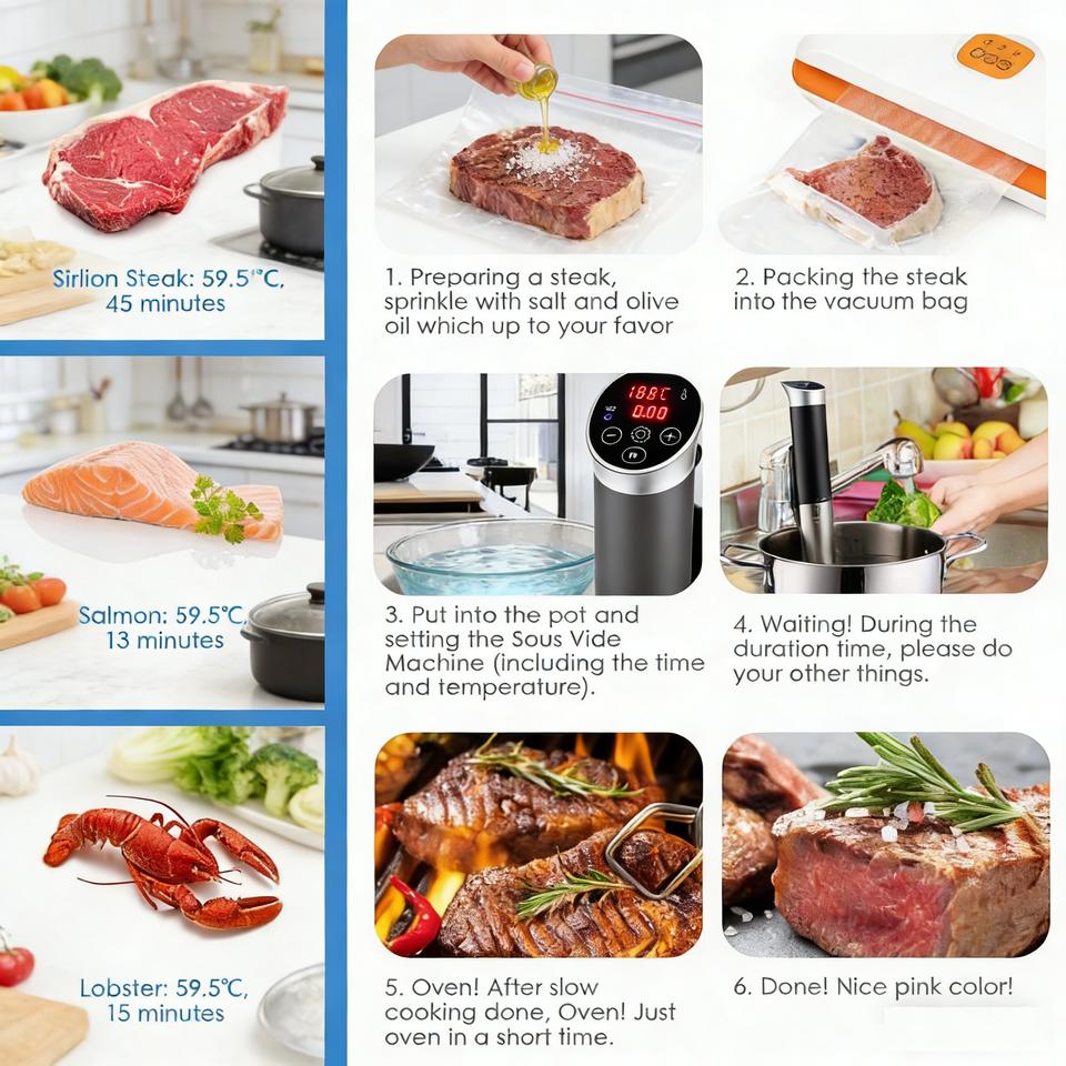 Cuisinière sous vide CE ETL avec moteur BLDC, pour usage commercial et domestique, bain-marie, contrôle précis de la température et du temps pour une cuisson polyvalente
