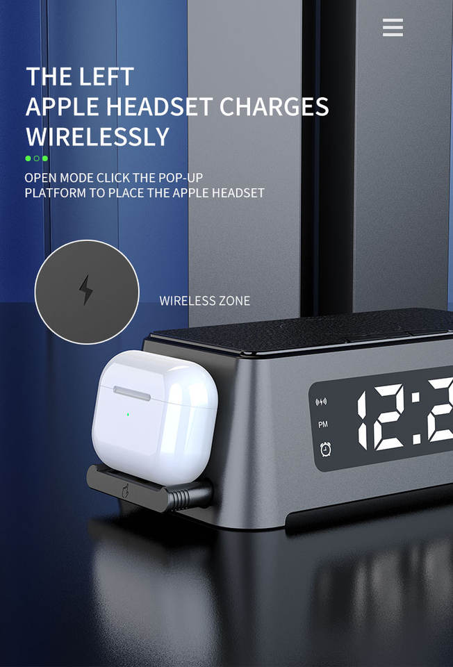 Nom du produit:Chargeur magnétique sans fil 4 en 1 avec lampe LED et affichage de l'heure