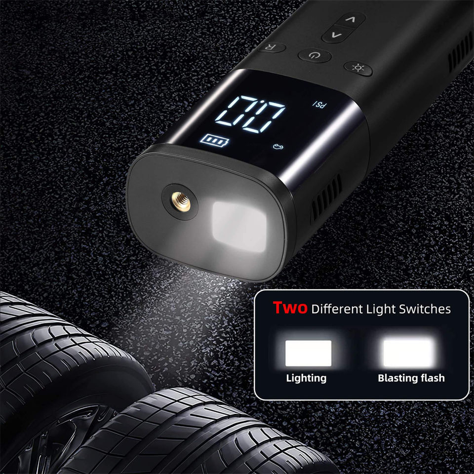 Lumière De secours, Moniteur de Pression des pneus, Portable, Arrêt automatique, Gonfler rapidement, Batterie externeFonction