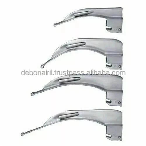 Ensemble de laryngoscopes à 4 lames incurvées en acier inoxydable LED électriques certifiés CE ISO, instruments chirurgicaux réutilisables OEM ODM