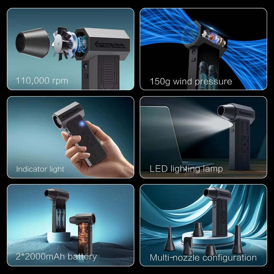 Souffleur d'air sans balais en PVC certifié CE ROHS FCC Aspirateur 2 1 110000RPM USB-C rechargeable économe en énergie Usine directe OEM ODM