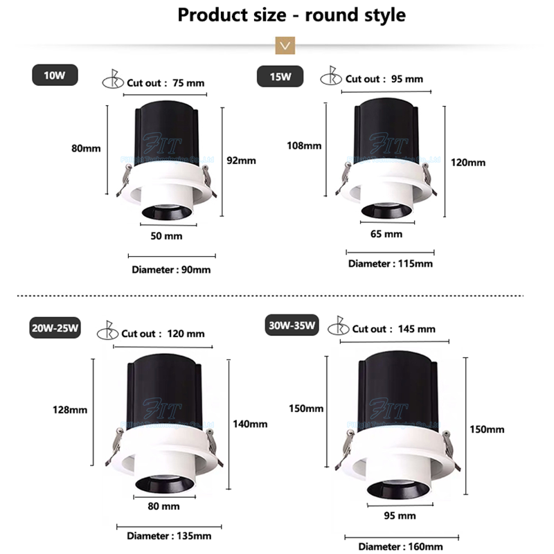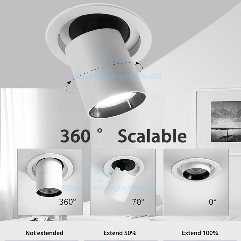 CE RoHS 360 Degrés Rotatif Anti-éblouissement Spot 30W COB Led Encastré Plafond Rétractable Downlight