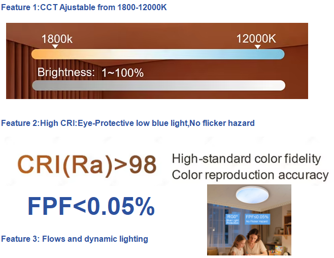 2700K (blanc chaud doux), 4100K (blanc neutre), 6000K (alerte de lumière du jour), 3500K (blanc chaud), 5000K (lumière du jour)La température de couleur (le TDC)