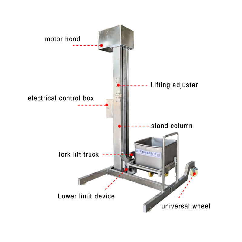 Chariot à viande en acier inoxydable CE chariot 200L élévateur de poubelle à roulettes élévateur à viande machine de levage de seau à vendre