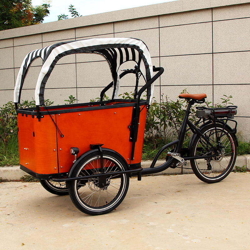 Remorque électrique standard CE E-cargo Bike Famille Vélos cargo à trois roues avec housse de pluie Vélo électrique à 3 roues Sièges pour enfants et bébés