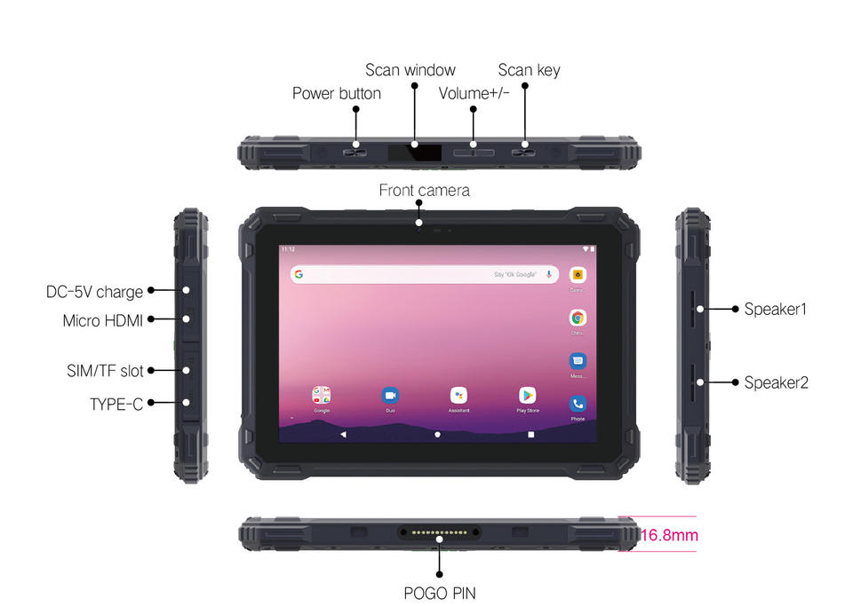 Ports:Type-C*1, emplacement pour carte TF+SIM, broche POGO 12 broches, port DC