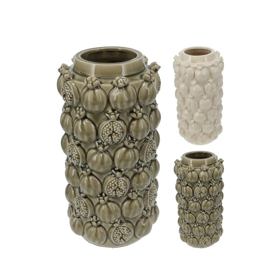 Vase en céramique avec motif grenade en relief H. 33 cm, assortiment