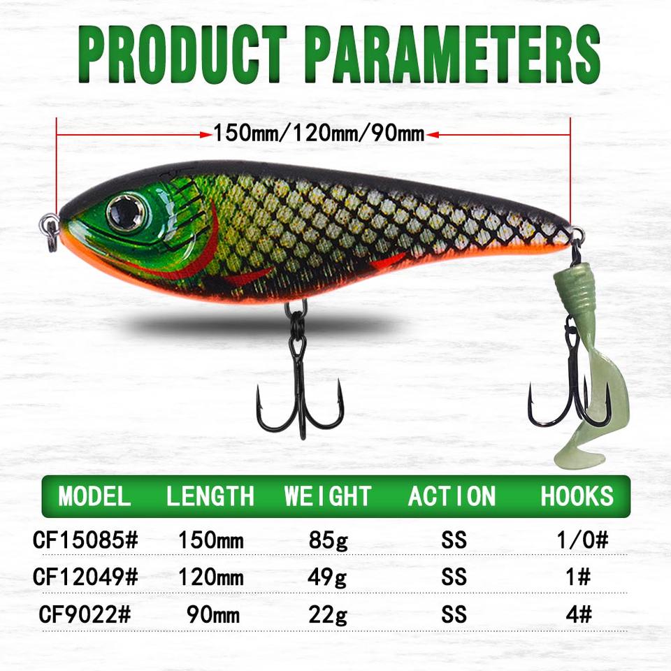 Leurre CF 90&120&150mm (Couleurs 24~45) Jerkbait à coulée lente avec queue souple pour la pêche au Musky, au Brochet et au Black Bass