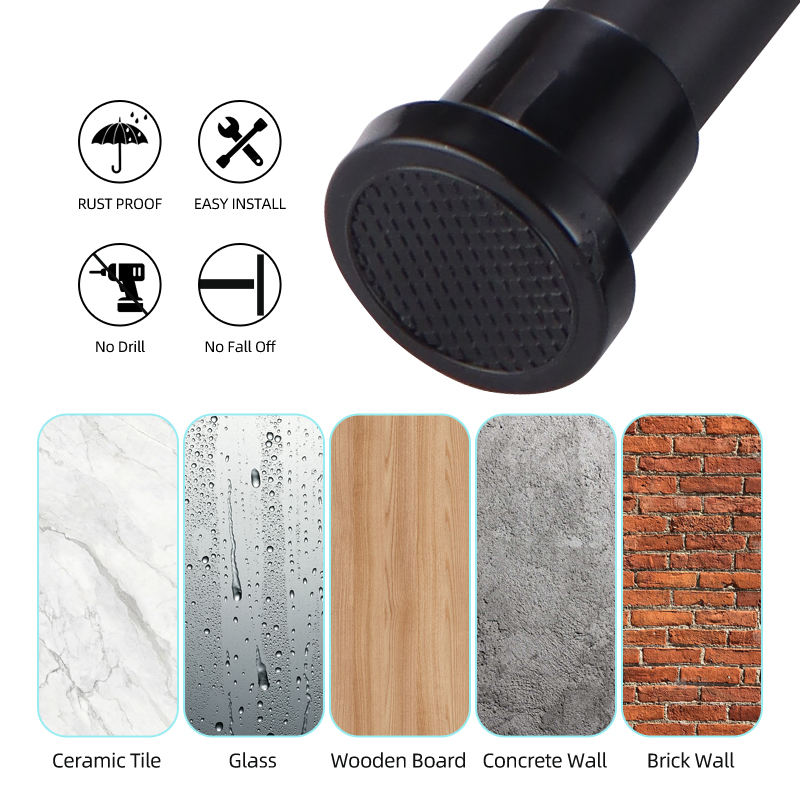 CF pas de perceuse étendre réglable métal acier inoxydable rideau pôle ensemble ressort Tension salle de bain douche tringle à rideau accessoires
