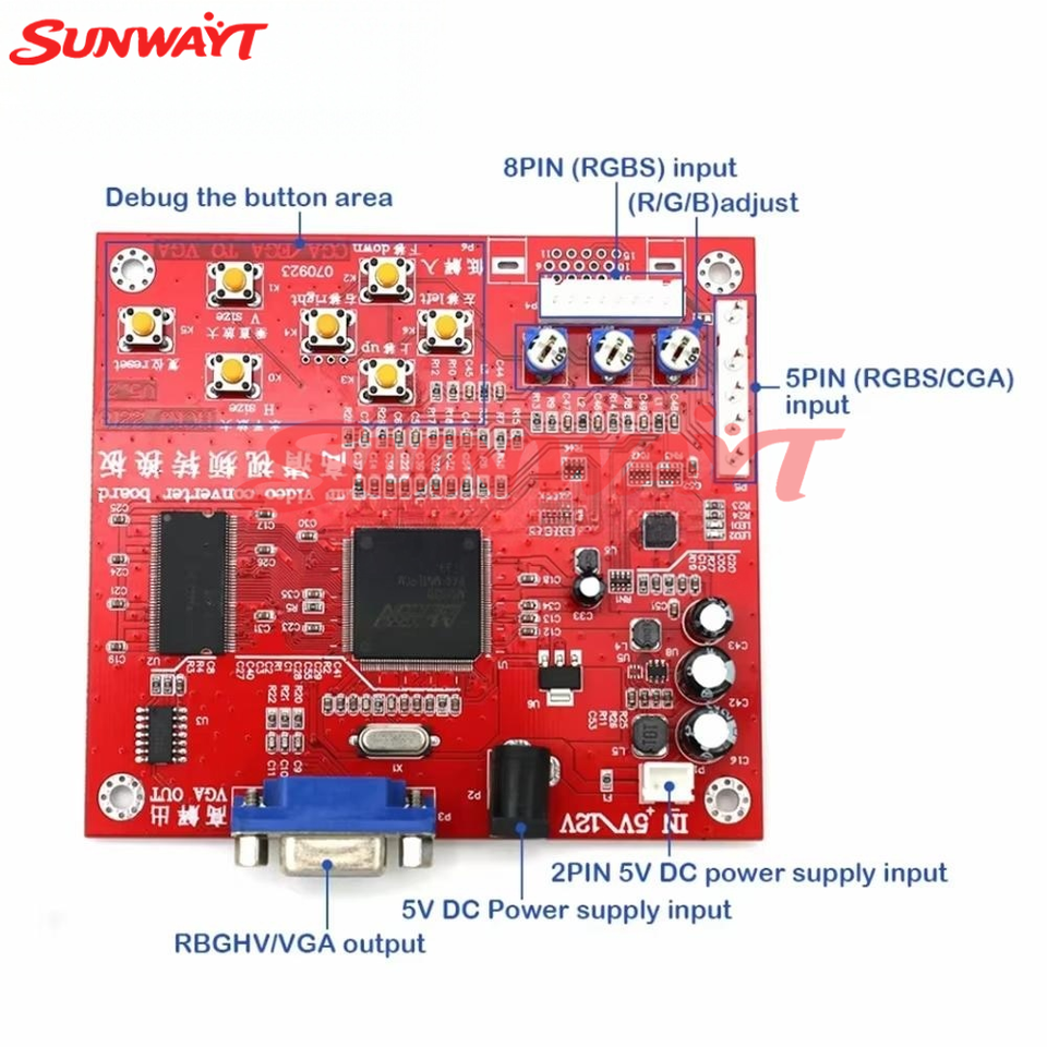 Carte de conversion vidéo CGA vers VGA CVBS pour jeux d'arcade, compatible avec les moniteurs CRT, LCD et PDP