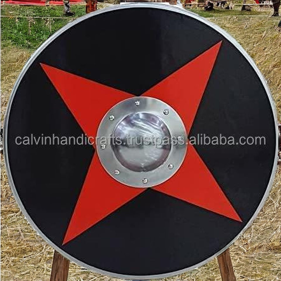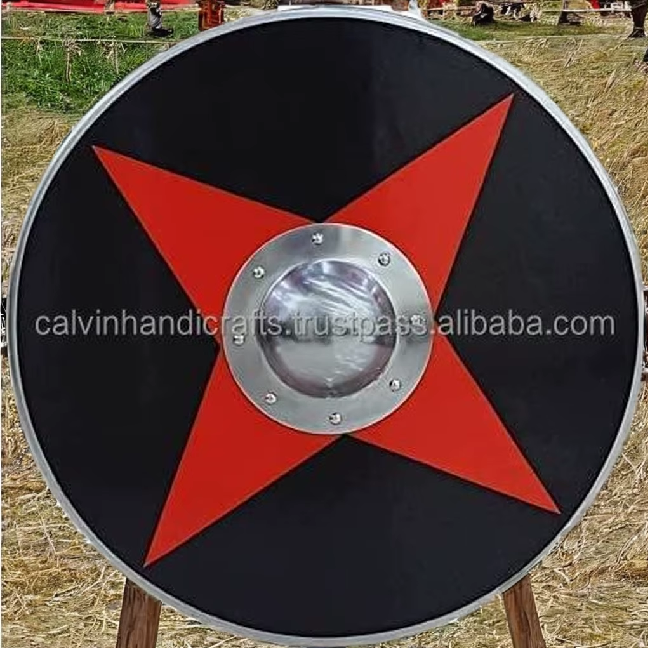 Bouclier de cosplay traditionnel en bois de 24 pouces, design métallique, finition polie, impression par gravure, décoration d'intérieur, objet de collection