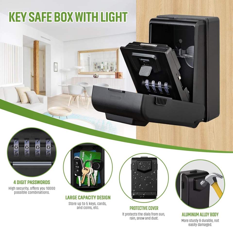 Boîte à clés numérique extérieure étanche CH-911 à 4 chiffres avec code à molette lumineuse robuste pour mur