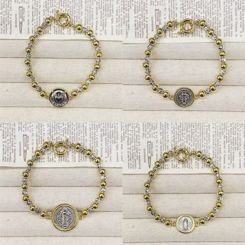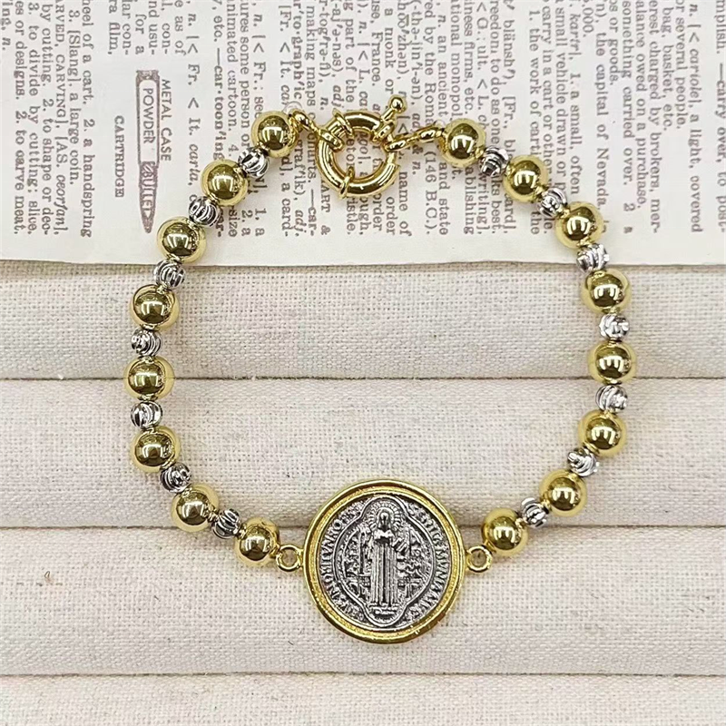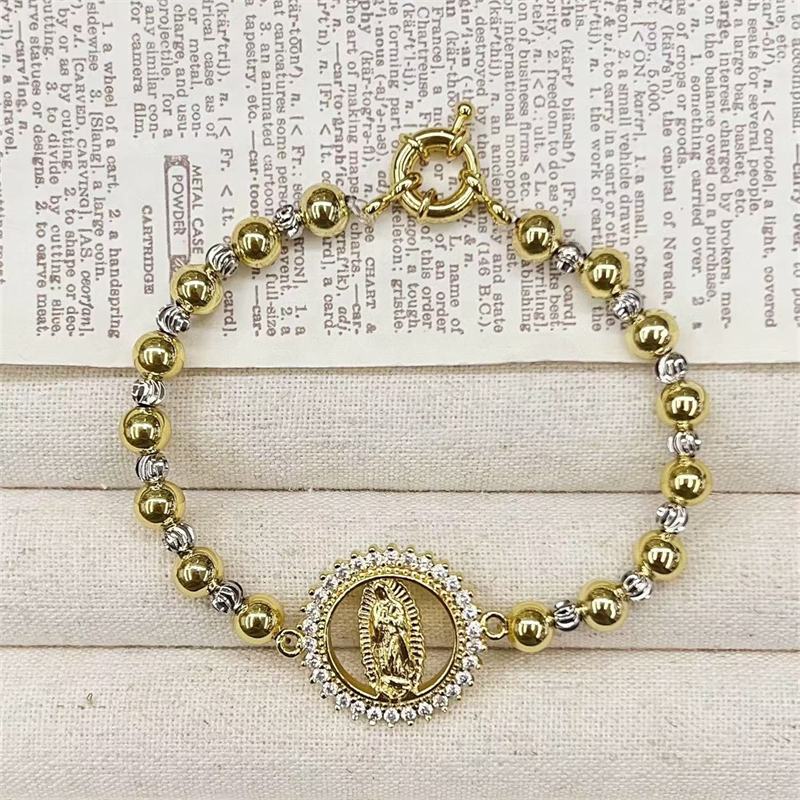 Bracelet tendance en perles de cuivre plaqué or CH-LAT0831, bracelet à breloques religieuses plaqué argent, Vingir Marie/Jésus, bijoux en gros