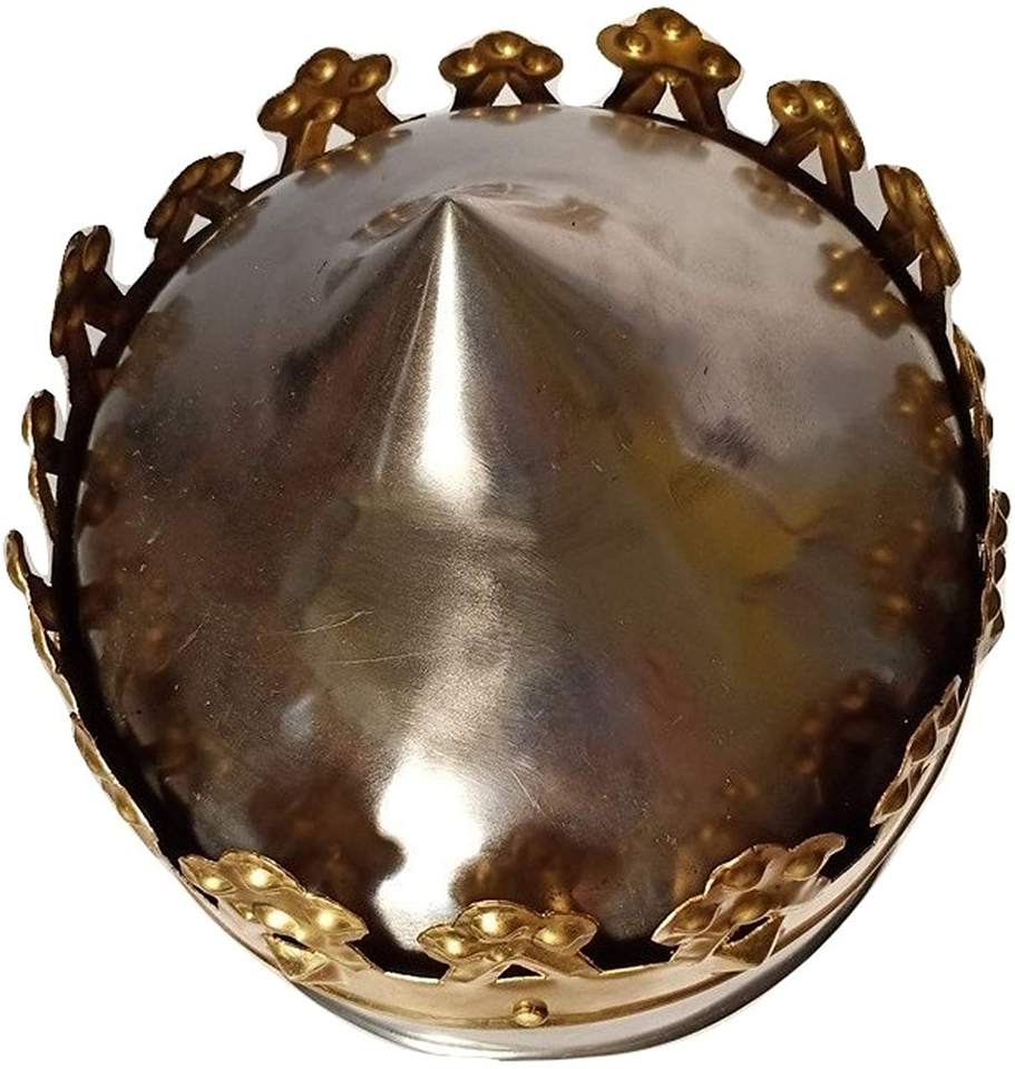 Couronne médiévale artisanale en acier inoxydable bicolore poli, modèle Roi Richard Cœur de Lion, pour la Fête des Pères et Noël