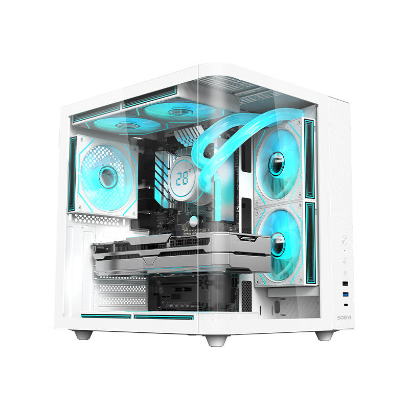 Boîtiers d'ordinateur de jeu en métal et verre incurvé MicroATX CH2+ Mid Tower avec ports USB sur le devant, vue sur la mer transparente, e-sport