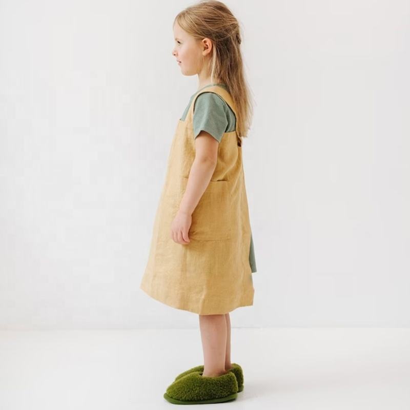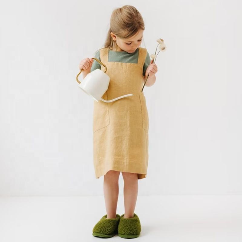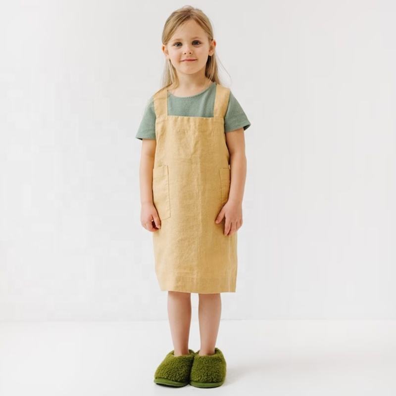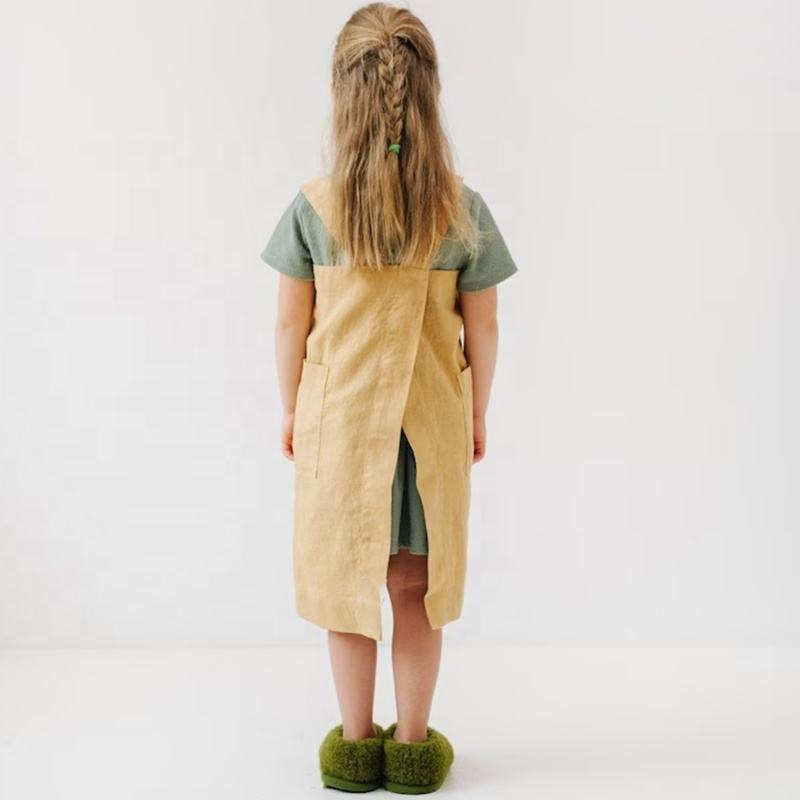 CHANGRONG Tablier de cuisine en lin pur lavé personnalisé pour enfants
