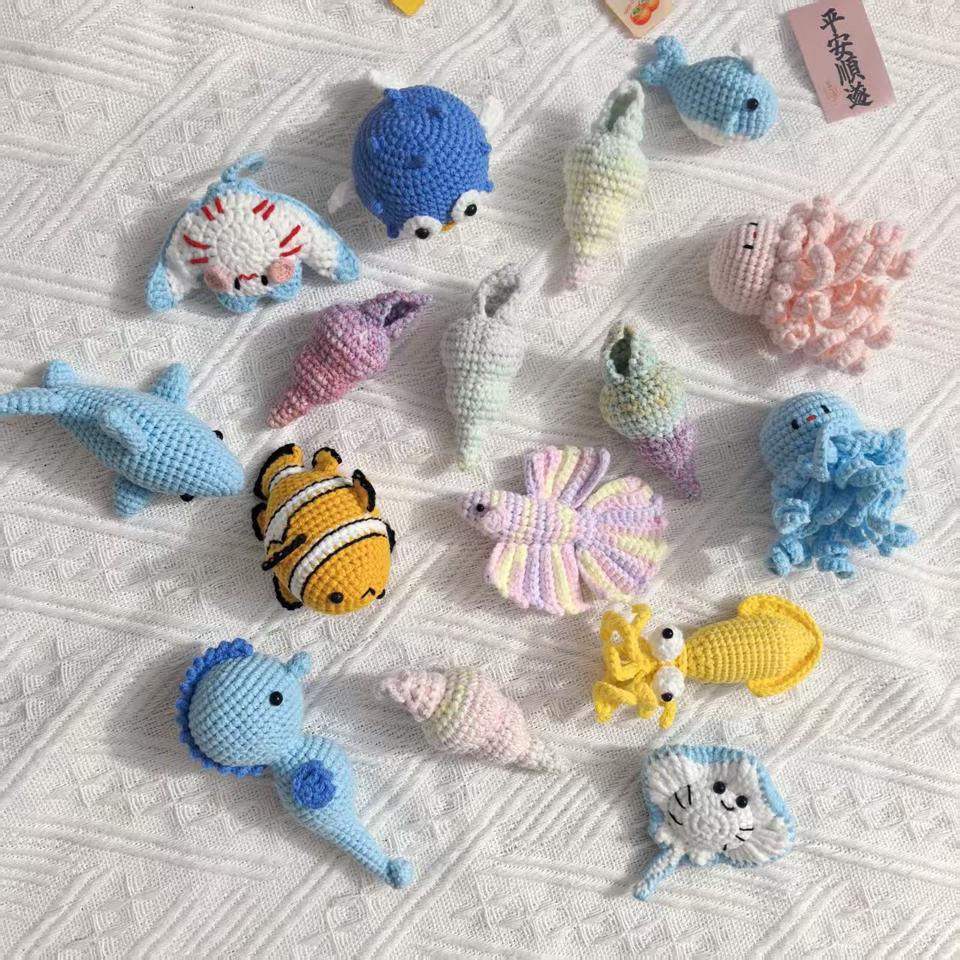 CHANXU CRAFT Pendentif en laine crochetée fait main DIY, porte-clés, série marine, animal, pieuvre et hippocampe, coquillage, cadeau pour les amoureux