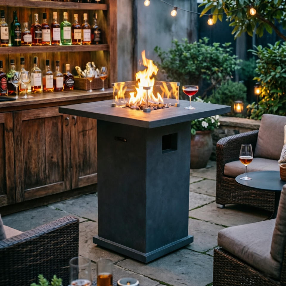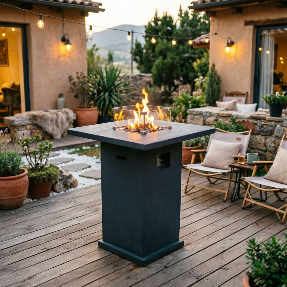 CHARM GARDEN Choix de l'architect - Table de foyer extérieur portable en béton au gaz, style moderne, avec chauffage 65000 BTU