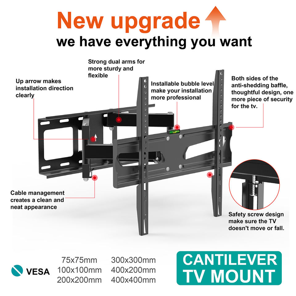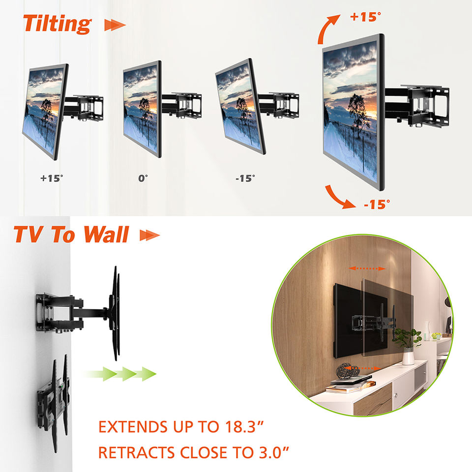 CHARMOUNT Support mural TV à mouvement intégral Support TV à double bras de 32 à 65 pouces avec chariots de montage TV pivotants et inclinables
