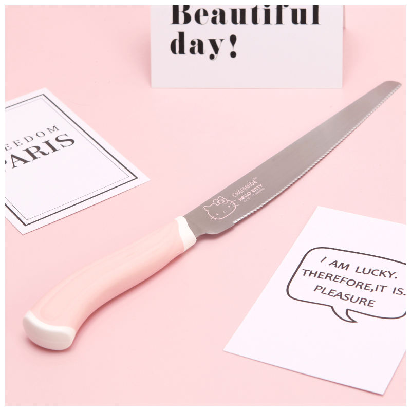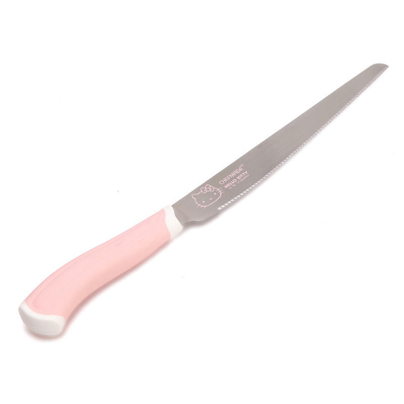 CHEFMADE KT7021 Couteau à pain promotionnel en acier inoxydable dentelé avec manche en PP rose