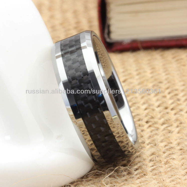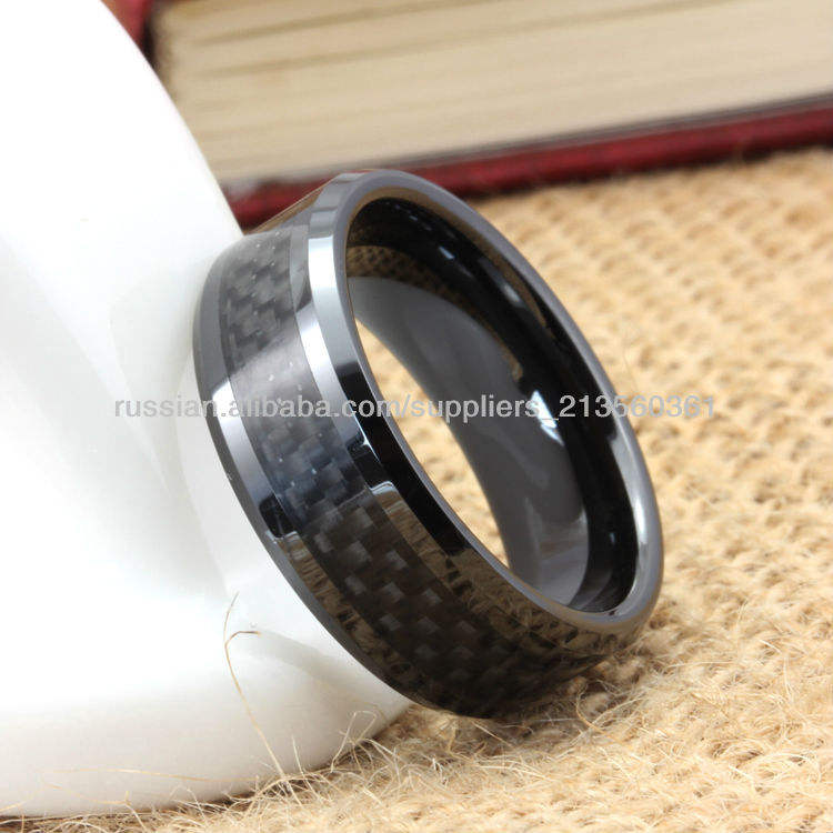 CHENG JEWELERS Bague en carbure de tungstène classique avec incrustation de fibre de carbone noire de 8 mm, bijoux pour doigts personnalisés pour hommes
