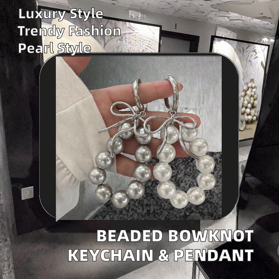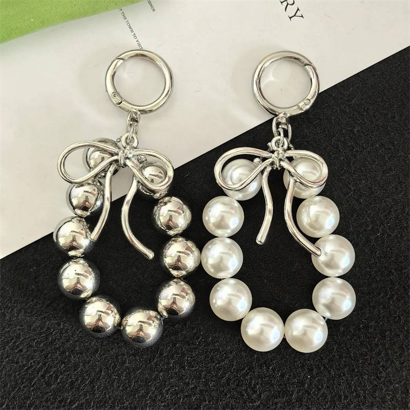 CHENXI Porte-clés exquis avec nœud papillon et perles, accessoires de téléphone, pendentif de sac en imitation perle, porte-clés en métal avec perles