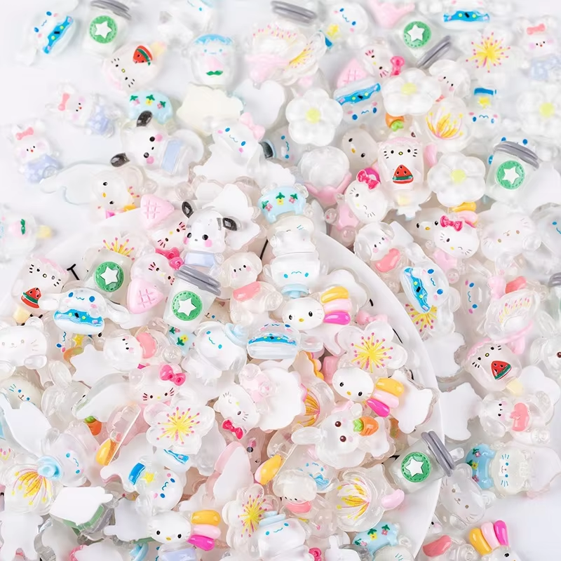 CHENXI Vente en gros de 100 breloques plates personnalisées de styles variés, accessoires de décoration mignons pour coques de téléphone DIY