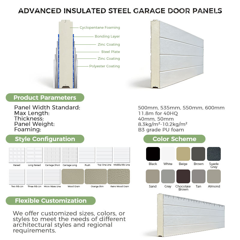Panneaux de porte de garage isolés CHI Factory Direct 16x7 avec âme en mousse PU pour les usines d'assemblage de portes