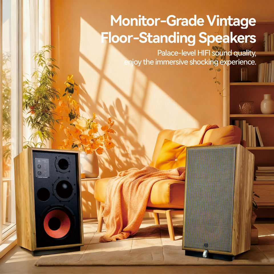 Enceinte Hi-Fi sur pied CHORDIO HT-12 - Enceinte de cinéma maison rétro 3 voies, médium 50 cœurs, caisson en bois, fréquence 30 Hz-20 kHz
